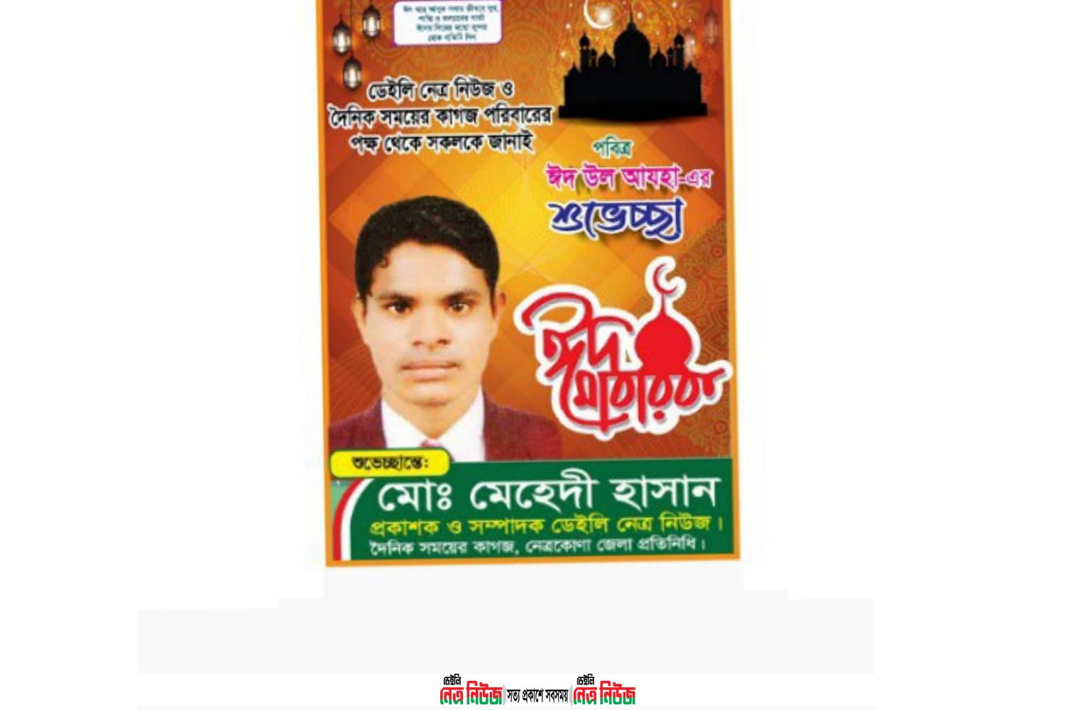 ঈদ-উল- আযহা উপলক্ষে নেত্রকোনা জেলাবাসীকে ঈদের শুভেচ্ছা জানিয়েছেন সাংবাদিক মেহেদী হাসান