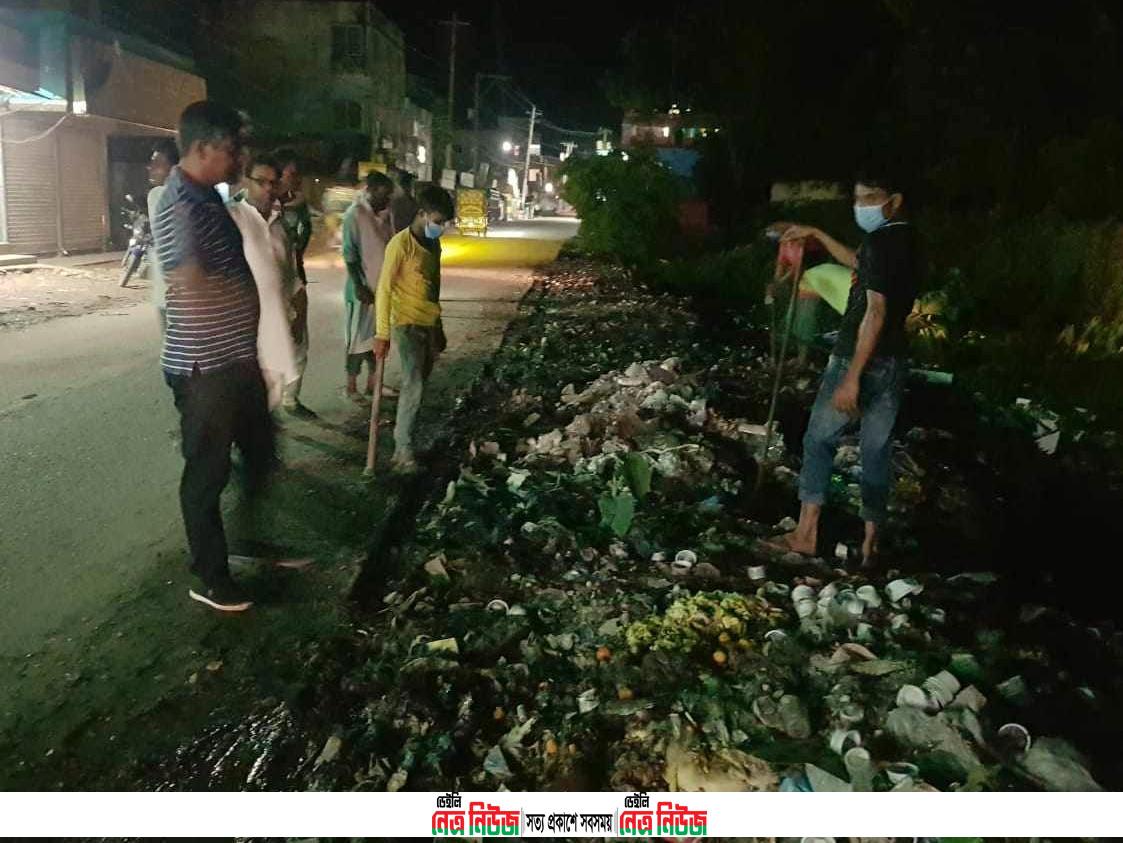 মদন পৌর সদরে রাতে আধারে চলছে বর্জ্য ব্যবস্থাপনার কাজ।