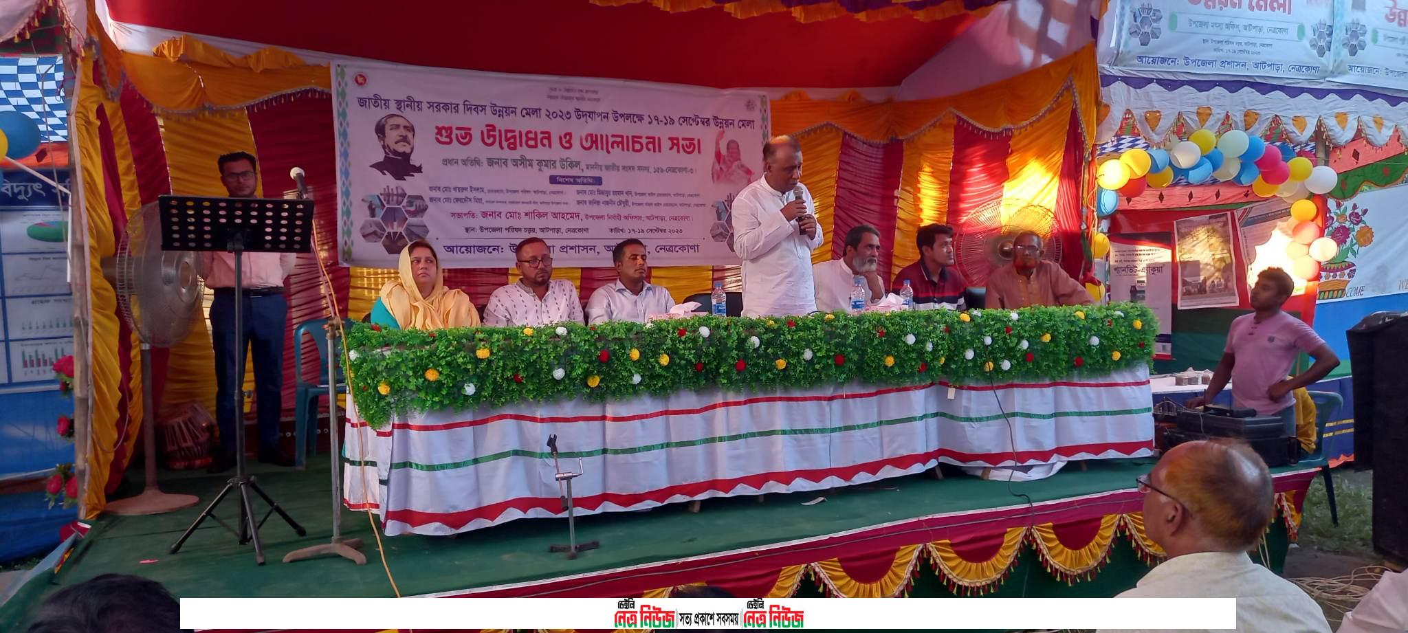 নেত্রকোনার আটপাড়ায় জাতীয় স্থানীয় সরকার দিবস উন্নয়ন মেলা ২০২৩ উদযাপন উপলক্ষে তিনদিনব্যাপী উন্নয়ন মেলার শুভ উদ্বোধন করা হয়েছে৷