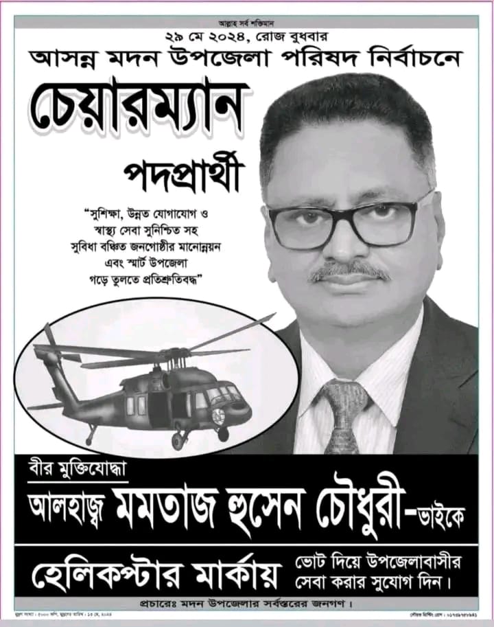 মদন উপজেলা নির্বাচনে ভোটারদের প্রথম পছন্দের তালিকায় এগিয়ে আছেন মমতাজ চৌধুরী