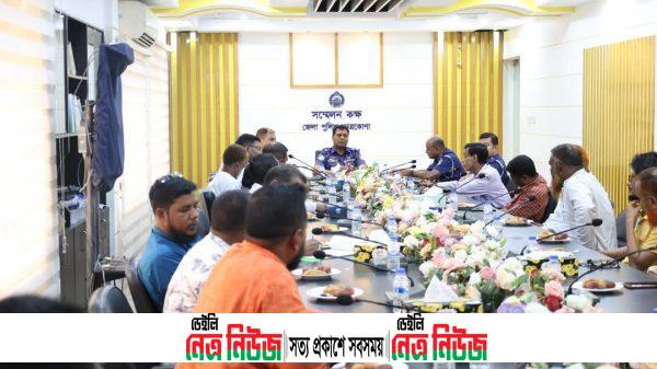 নেত্রকোনা পুলিশ সুপারের সম্মেলন কক্ষে আসন্ন পবিত্র ঈদ-উল-আযহা-২০২৫ উপলক্ষে আইন শৃঙ্খলা রক্ষার্থে ব্যাংক কর্মকতাগণ ও পরিবহন মালিক সমিতি এবং বাজার কমিটির সাথে মতবিনিময় সভা অনুষ্ঠিত হয়।