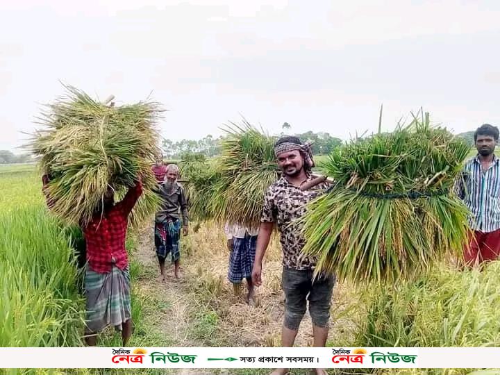 নেত্রকোনায় কৃষকের ধান কেটে বাড়িতে পৌঁছে দিলো জেলা যুব শ্রমিক লীগ