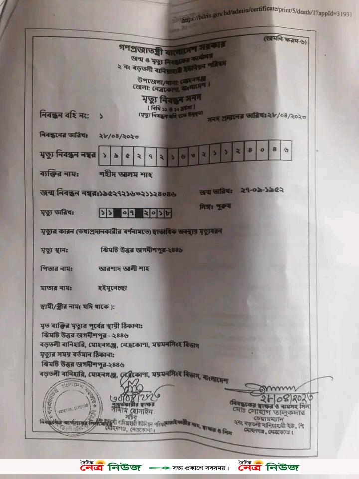 মোহনগঞ্জে প্রতারণা করে মৃত ব্যক্তিদের নামে সমিতির গঠন করে জলমহাল ইজার