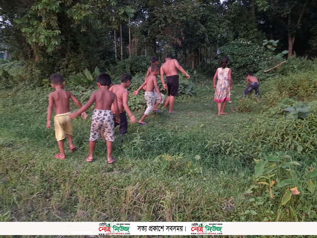তাপদাহে গ্রামের শিশুরা একটু প্রশান্তি আশায় উদোম গায়ে খোলা জায়গায়
