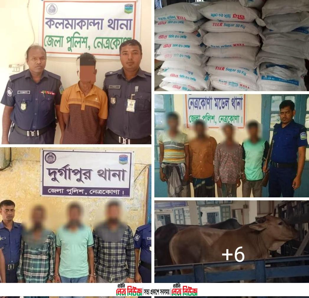 দুর্গাপুর থানা কর্তৃক ১০২ বস্তা ভারতীয় চিনি সহ ০৩ জন চোরাকারবারি গ্রেফতার,নেত্রকোণা মডেল থানা পুলিশ কর্তৃক চোরাইকৃত গরু ২৪ ঘন্টার মধ্যে উদ্ধার এবং আসামি গ্রেফতার, জেলা গোয়েন্দা শাখা পশ্চিম