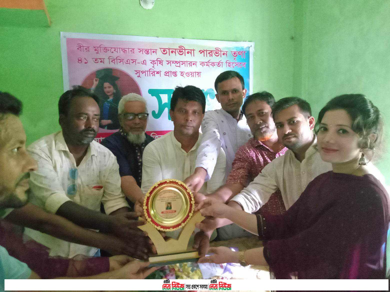 জানা যায়, ৪১তম বি সিএস - এ কৃষি সম্প্রসারণ কর্মকর্তা হিসেবে সুপারিশ প্রাপ্ত হওয়ার তানভীনা পারভিন তৃণাকে সংবর্ধনা দেওয়া হযেছে।