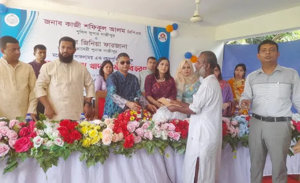 গাজীপুর পুনাক সভানেত্রীর জিনিয়া ফারজানার সভাপতিত্বে খাদ্য সামগ্রী বিতরণ অনুষ্ঠানে বক্তব্য রাখেন গাজীপুরের পুলিশ সুপার কাজী শফিকুল ইসলাম।