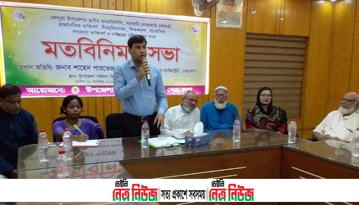 মতবিনিময় সভায় প্রধান অতিথির বক্তব্য রাখেন নেত্রকোনা জেলা প্রশাসক ও জেলা ম্যাজিস্ট্রেট শাহেদ পারভেজ মহোদয়।
