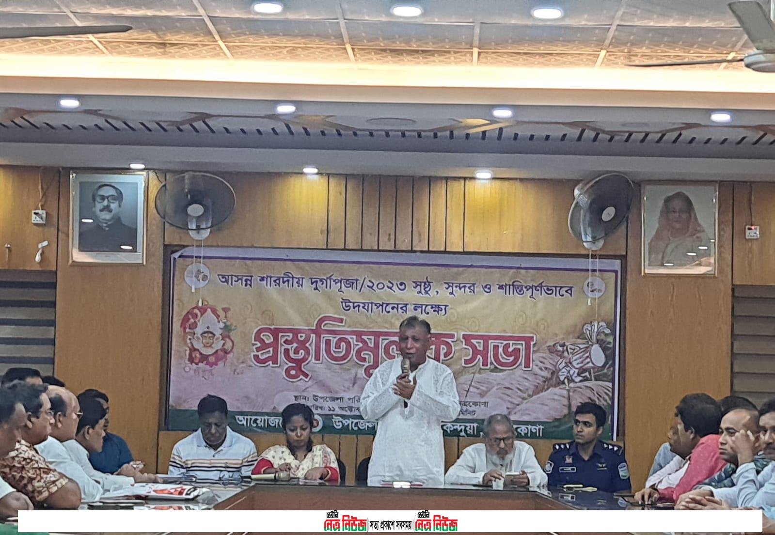 কেন্দুয়ায় দুর্গা পূজা উদযাপন উপলক্ষে প্রস্তুতিমূলক সভা অনুষ্ঠিত