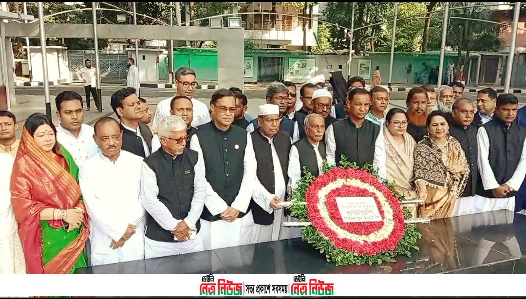 নেত্রকোনা জেলা আওয়ামীলীগের কার্যনির্বাহী কমিটির নেতৃবৃন্দ শুক্রবার গোপালগঞ্জের টুঙ্গিপাড়া যাত্রাপথে রাজধানীর ধানমন্ডি ৩২ নম্বরে বঙ্গবন্ধুর প্রতিকৃতিতে শ্রদ্ধাঞ্জলি অর্পণ করেছেন।