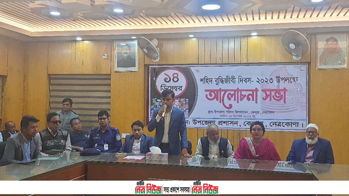 নেত্রকোনার কেন্দুয়ায় শহীদ বুদ্ধিজীবি দিবস পালন উপলক্ষে উপজেলা পরিষদ প্রাঙ্গণে বঙ্গবন্ধু মুর্যালে শ্রদ্ধা নিবেদন শেষে আলোচনা সভা অনুষ্ঠিত হয়েছে।