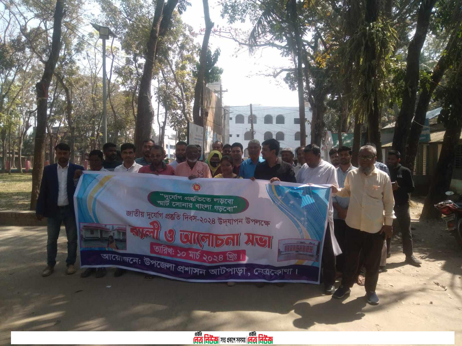 দুর্যোগ প্রস্তুতিতে লড়বো স্মার্ট সোনার বাংলা গড়বো” এই প্রতিপাদ্যকে সামনে রেখে নেত্রকোনার আটপাড়ায় উপজেলা প্রশাসন আয়োজনে বাংলাদেশ জাতীয় দূর্যোগ প্রশমন দিবস পালিত হয়েছে।