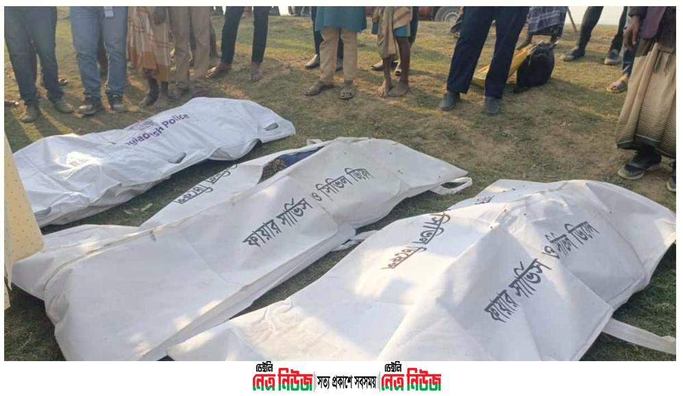 আজ সোমবার (১০ মার্চ) দুপুরে খালিয়াজুরীর লেপসিয়া নৌ-পুলিশ ও ময়মসিংহের ফায়ার সার্ভিসের ডুবুরি দলের সদস্যরা অভিযান চালিয়ে ধনু নদীর নাওটানা অংশ থেকে ওই ৩ জনের লাশ উদ্ধার করে। খালিয়াজুরীর লেপসিয়া নৌ-পুলিশ ফাঁড়ির আইসি জাহাঙ্গীর আলম খান এ তথ্য নিশ্চিত করছেন।