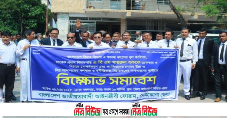 বিক্ষোভ সমাবেশের আয়োজন করে বাংলাদেশ জাতীয়তাবাদী আইনজীবী ফোরাম নেত্রকোনা জেলা শাখা অ্যাডভোকেট জিয়া উদ্দীন জিয়ার সভাপতিত্বে ও সঞ্চালনা করেন সংগঠনের সাধারণ সম্পাদক মাসুদ রানা চৌধুরী।