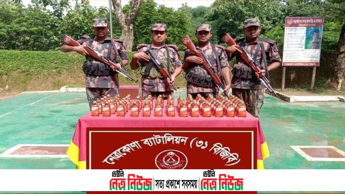 নেত্রকোনার সীমান্তবর্তী উপজেলা দুর্গাপুরে ৭০ বোতল অফিসার্স চয়েজ ব্র্যান্ডে ভারতীয় মদ জব্দ করেছে বর্ডার গার্ড বাংলাদেশ (বিজিবি)। মালিকবিহীন জব্দকৃত এসব মদক নেত্রকোনা মাদকদ্রব্য নিয়ন্ত্রণ অধিদপ্তরের নিকট হস্তান্তর করা হবে।