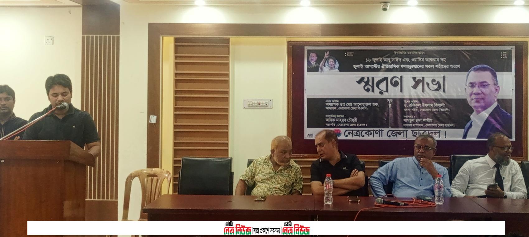 গণঅভ্যুত্থানের শহীদদের স্মরণে নেত্রকোনা জেলা ছাত্রদলের স্মরণ সভা অনুষ্ঠিত