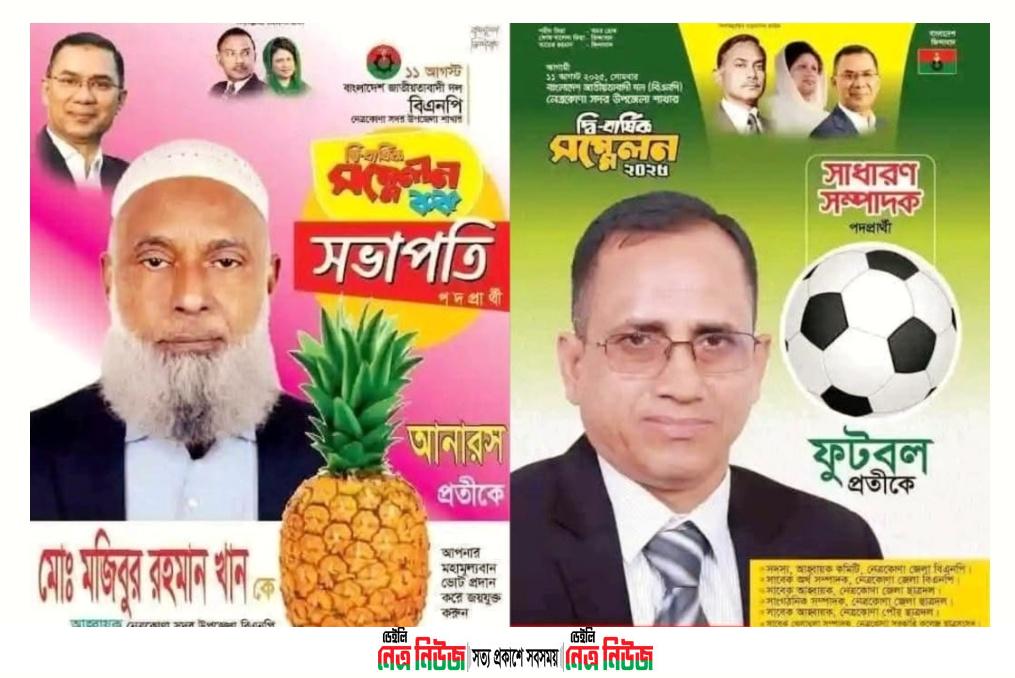 নেত্রকোনা সদর উপজেলা বিএনপির সম্মেলনে মো. মজিবুর রহমান খান সভাপতি ও তাজউদ্দিন ফারাস সেন্টু সাধারণ সম্পাদক নির্বাচিত হয়েছেন। আজ সোমবার ১১ আগস্ট সদর উপজেলা বিএনপির সম্মেলন অনুষ্ঠিত হয়।