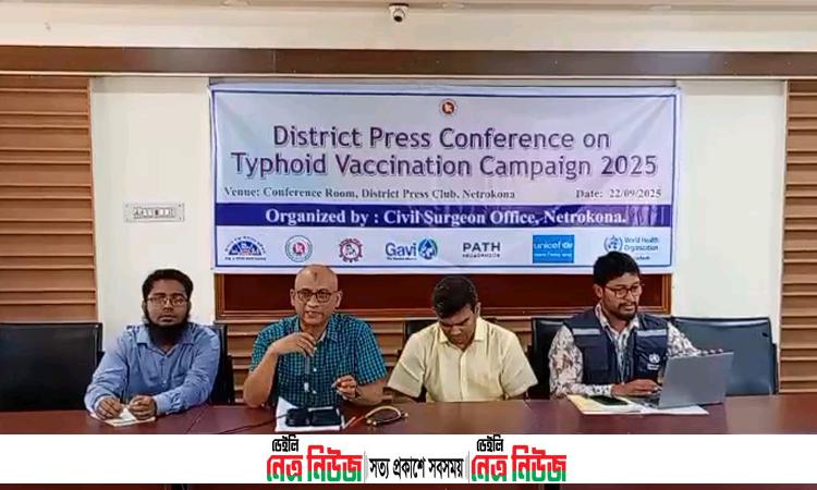 নেত্রকোনায় টাইফয়েড টিকাদান ক্যাম্পেইন-২০২৫ উপলক্ষে নেত্রকোনা জেলা প্রেসক্লাব হলরুমে সংবাদ সম্মেলন অনুষ্ঠিত হয়েছে।