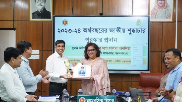 ময়মনসিংহ বিভাগের শ্রেষ্ঠ জেলা প্রশাসক হিসেবে জাতীয় শুদ্ধাচার পুরস্কার পেয়েছেন নেত্রকোনা জেলা প্রশাসক ও বিজ্ঞ জেলা ম্যাজিস্ট্রেট শাহেদ পারভেজ। গত ৩০ জুন ময়মনসিংহ বিভাগের বিভাগীয় কমিশনার উম্মে সালমা তানজিয়া এর