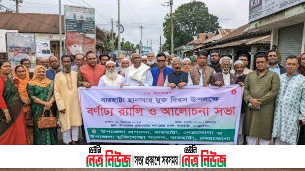 নেত্রকোনার বারহাট্টায় ৮ ডিসেম্বর হানাদার মুক্ত দিবস পালিত হয়েছে,শুক্রবার উপজেলা প্রশাসন ও উপজেলা মুক্তিযোদ্ধা কমান্ডের যৌথ উদ্যোগে দিবসটি উপলক্ষে বর্ণাঢ্য র্যালি ও আলোচনা সভার আয়োজন করা হয়। উপজেলা নির্বাহী অফিসার